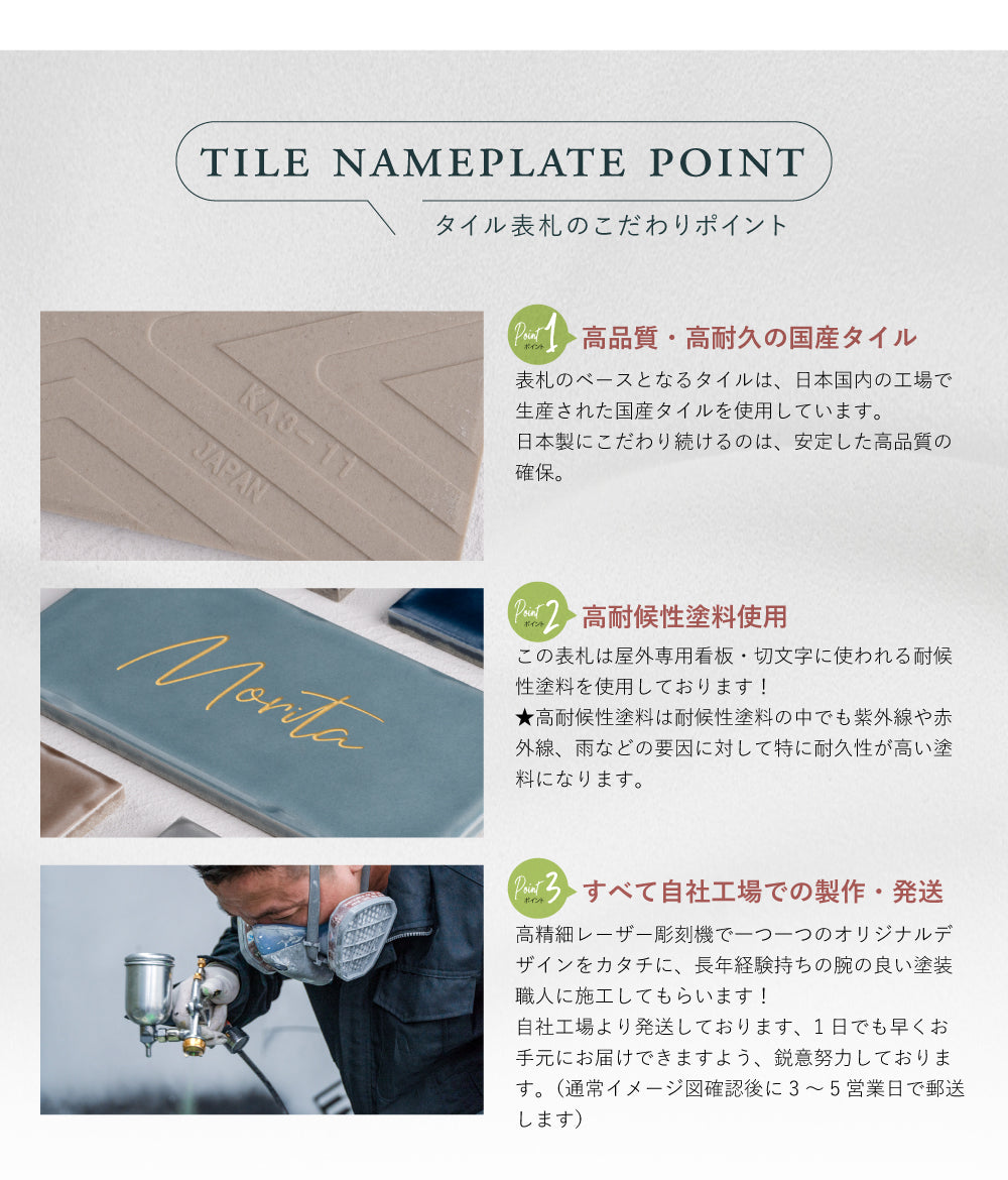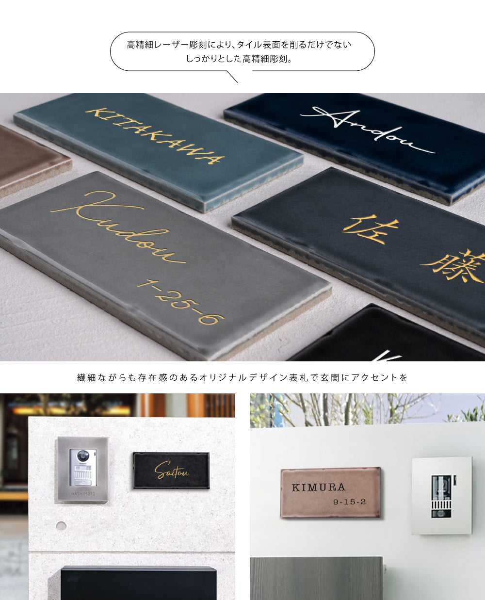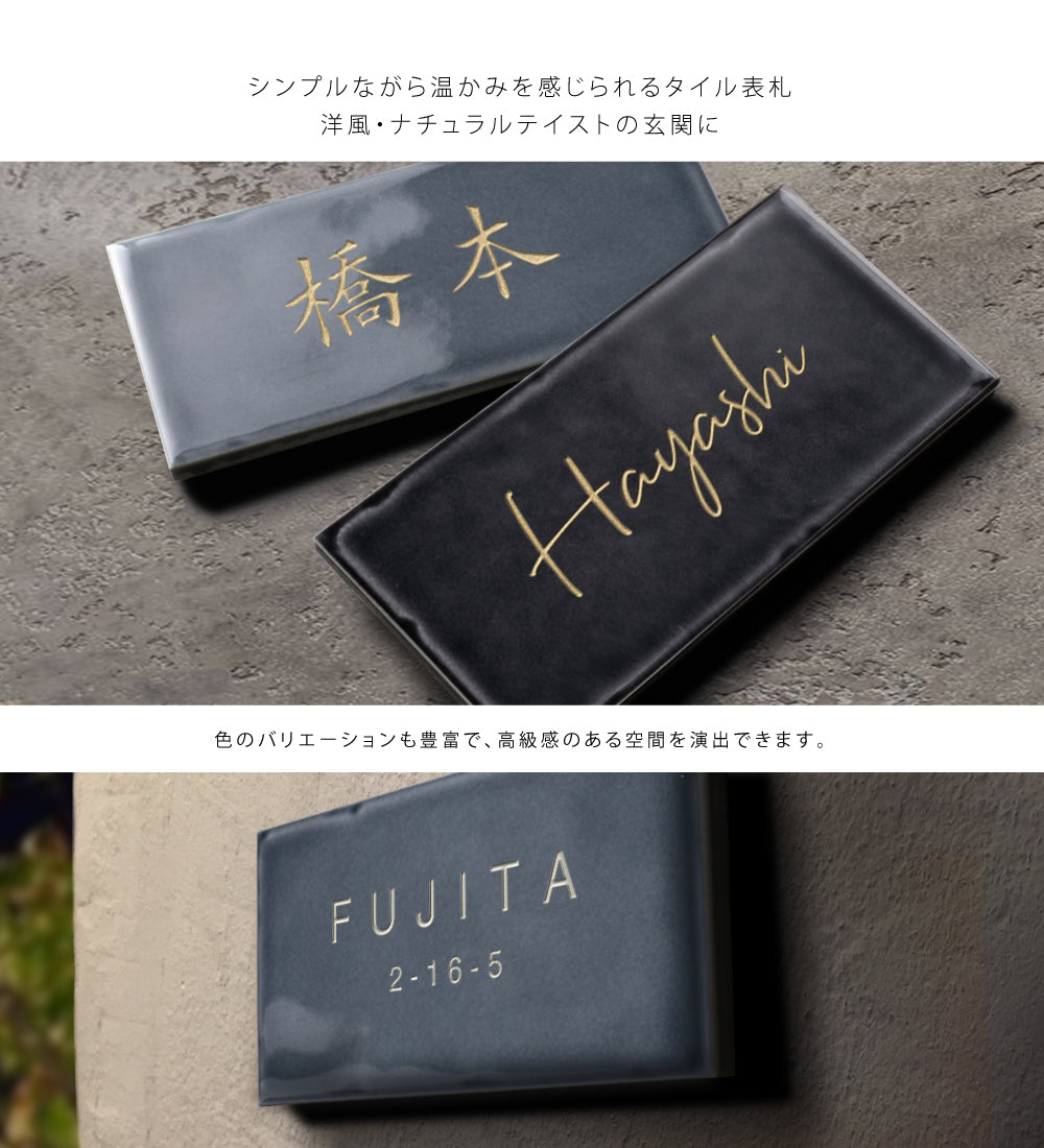 表札 戸建て W144mmXH69mm×t7mm タイル 北欧 ポスト 番地 住所 門柱 新築祝い コンパクト gs-nmpl-1070