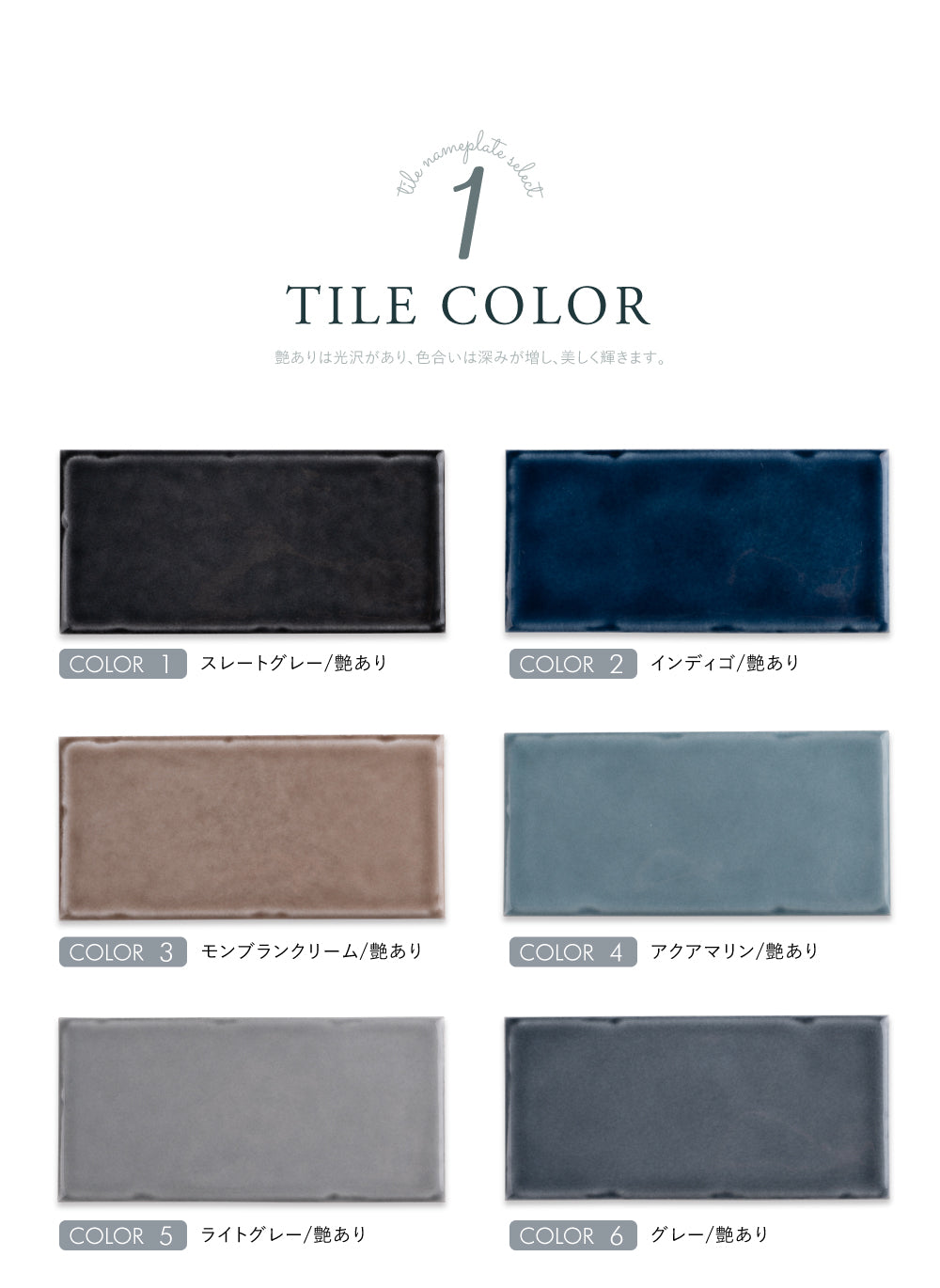 ●タイルは焼きもののため、一点一点、模様や表情が異なります。また、焼きもの特有の自然な色むらと色幅があります。