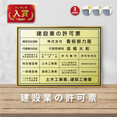 下限 ¥12,700単価 /利用不可建設業の許可票 看板 W450mm×H350mm×t3mm 許可票 文字入れ無料 【内容印刷込み】gspl-3rb