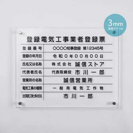 ¥9,020¥10,612単価 /利用不可登録電気工事業者登録票 透明アクリル W450mm×H350mm×t3mm 内容込み 名入れ 看板 法定看板 許可票 gspl-3ele