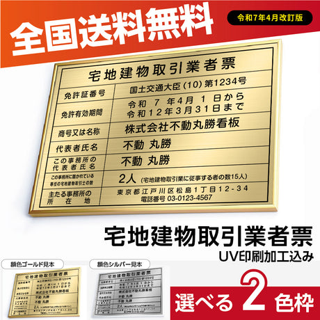 下限 ¥58,300単価 /利用不可宅地建物取引業者登録票+宅建報酬額票 H350×W450mm 【内容印刷込】 tr-gold