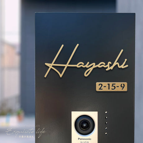 下限 ¥4,500単価 /利用不可表札 手書き風 おしゃれ 北欧 ゴールド ステンレス&切文字表札 番地追加可 gs-nmpl-1003