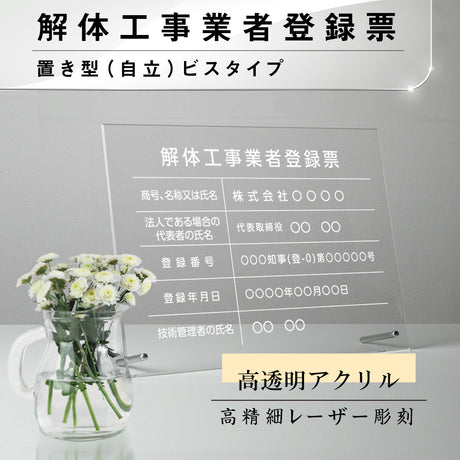 ¥14,800単価 /利用不可解体工事業者登録票 看板 業者票 事務所【透明アクリル板/置き型】gs-pl-kaitai-standT