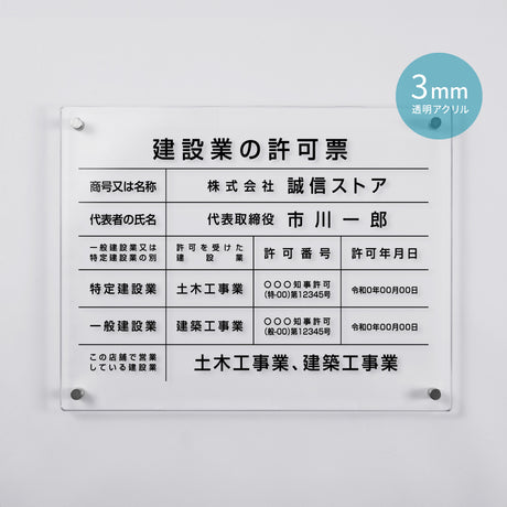 ¥12,100単価 /利用不可建設業の許可票 看板 業者票 t5mm透明アクリル板 【内容印刷込み】T-rb