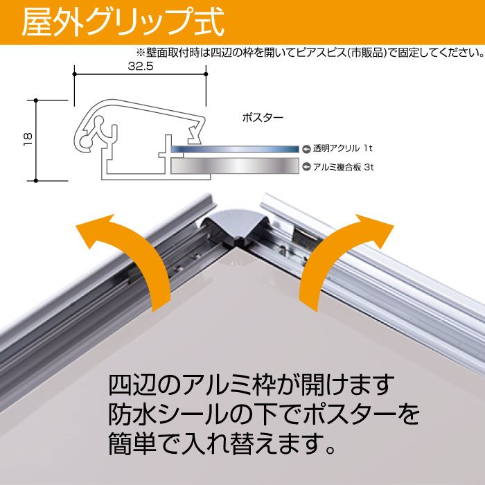 ※ポスター入替えが簡単 :パネルは四方向が開閉式のため、ポスターの出し入れが簡単です。滑り止めと安定性が良いです。