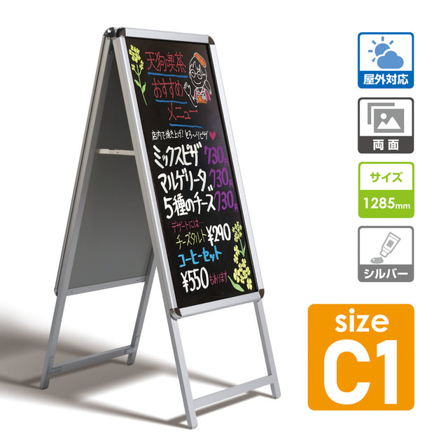 ポスター差込&黒板書き消し、両用看板です!屋外使用OK。A型看板 グリップA シルバー サイズ:C1 /立て看板 / スタンド看板 / A看板 / 店舗用看板 / 屋外看板 / 黒板/ボート/店舗用看板 / 屋外看板 / ポスター入れ替え式 /四辺開閉式/ 前面開閉式/ ポスター入れ替え式 A型看板/ A型看板 / スタンド看板 / A看板 / 両用式 /