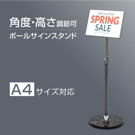 ポールサインスタンド看板 差し込み式 角度/高さ調節可 A4片面横 W300×H840~1170mm cds-a60