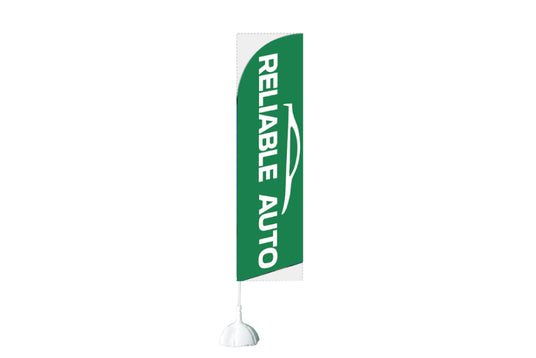 セイルバナーは先端がカーブした、ヨットの帆のような形がおしゃれでスタイリッシュなのぼりです。その形により、直線で構成された従来ののぼり旗と比べ、遠くからでも目立ち、人目を引きます。また、形状的に風を逃がして回転するので、風の抵抗を受けにくく丈夫です