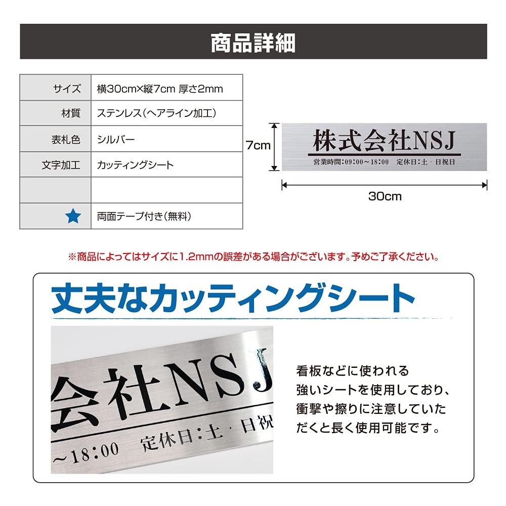 表札 オフィス W300mm×H70mm ステンレス オフィス 店舗の看板 会社 事務所 gs-pl-Kirimoji-30070 ...は取り寄せ中で入荷次第発送します。