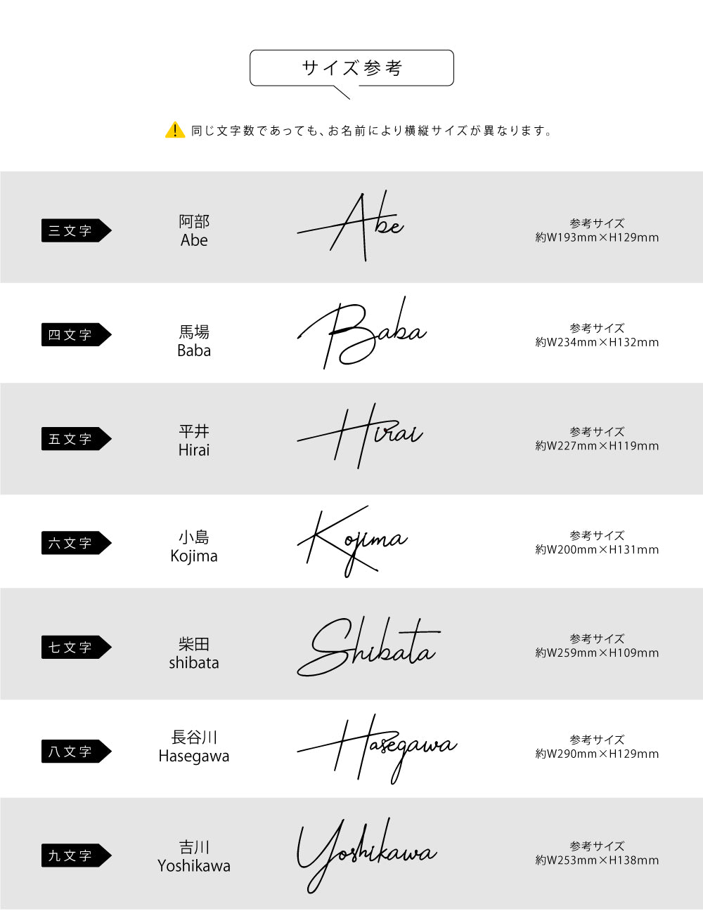 | サイズ(mm) | ※縦幅サイズは製作文字数・内容により変動 |