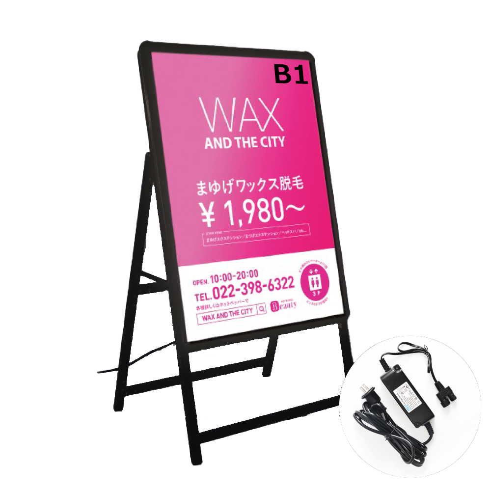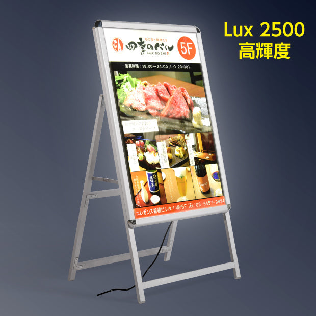 LEDライト(導光板)で案内表示や広告デザインを見易くおしゃれに演出するA型スタンド看板です。