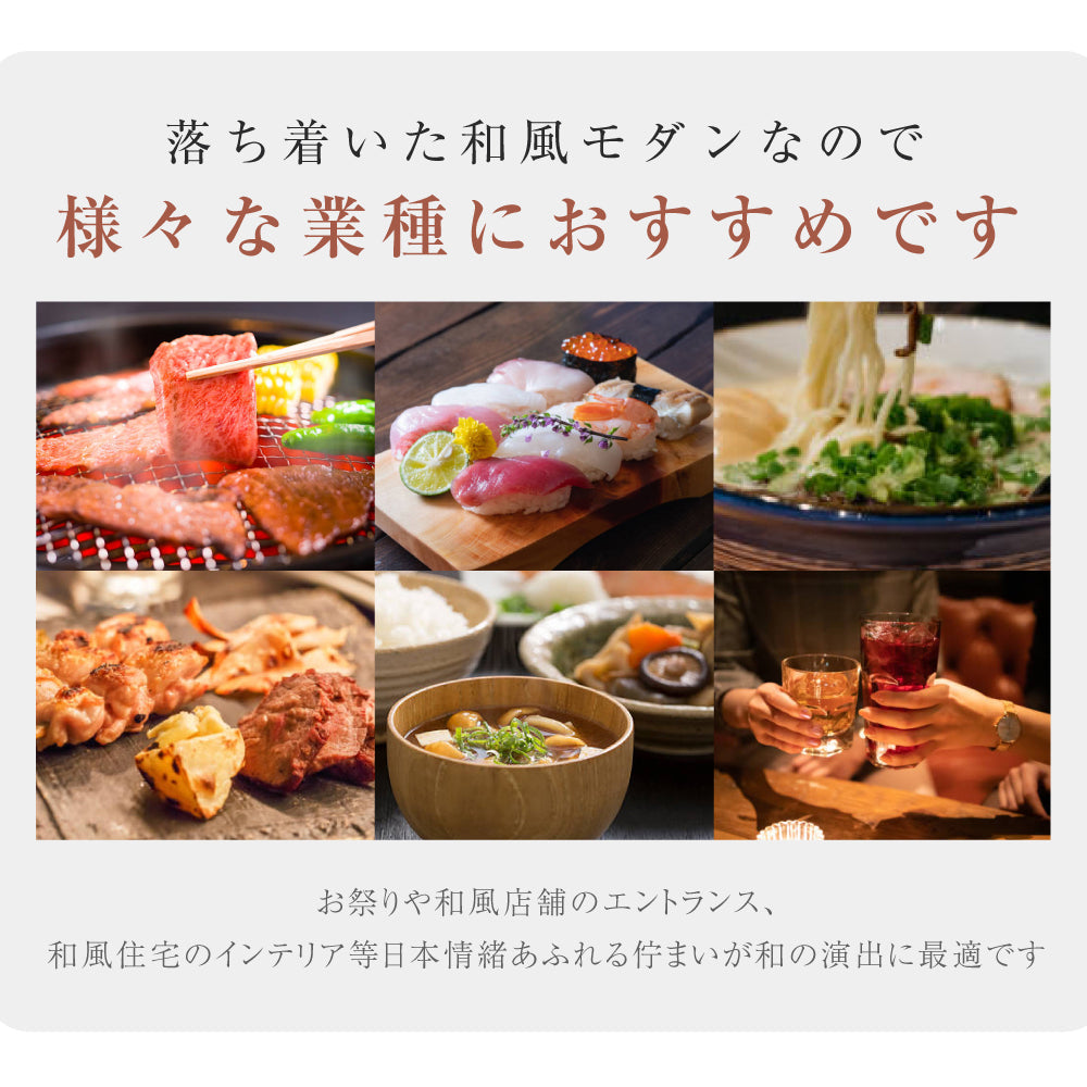 お祭りや和風店舗のエントランス、和風住宅のインテリアなど、日本情緒あふれる佇まいが和の演出に最適です。柔らかい印象を与える、美しいラインとあたたかみのある光。屋外使用可能なので、店舗のエントランスや通路などに置いて幻想的な雰囲気を演出します。