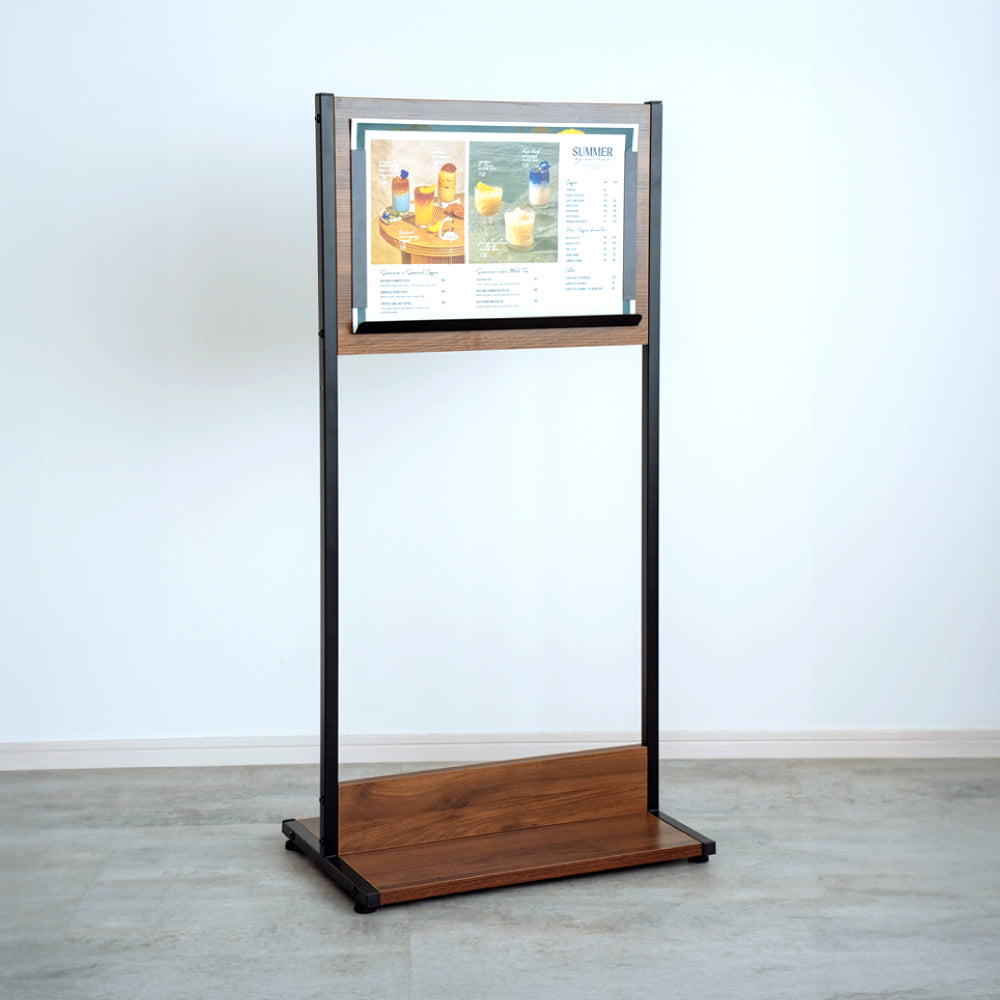 木製 メニュースタンド 案内板 A3サイズ 横置き磁石止め ウォルナット色 TMS-110