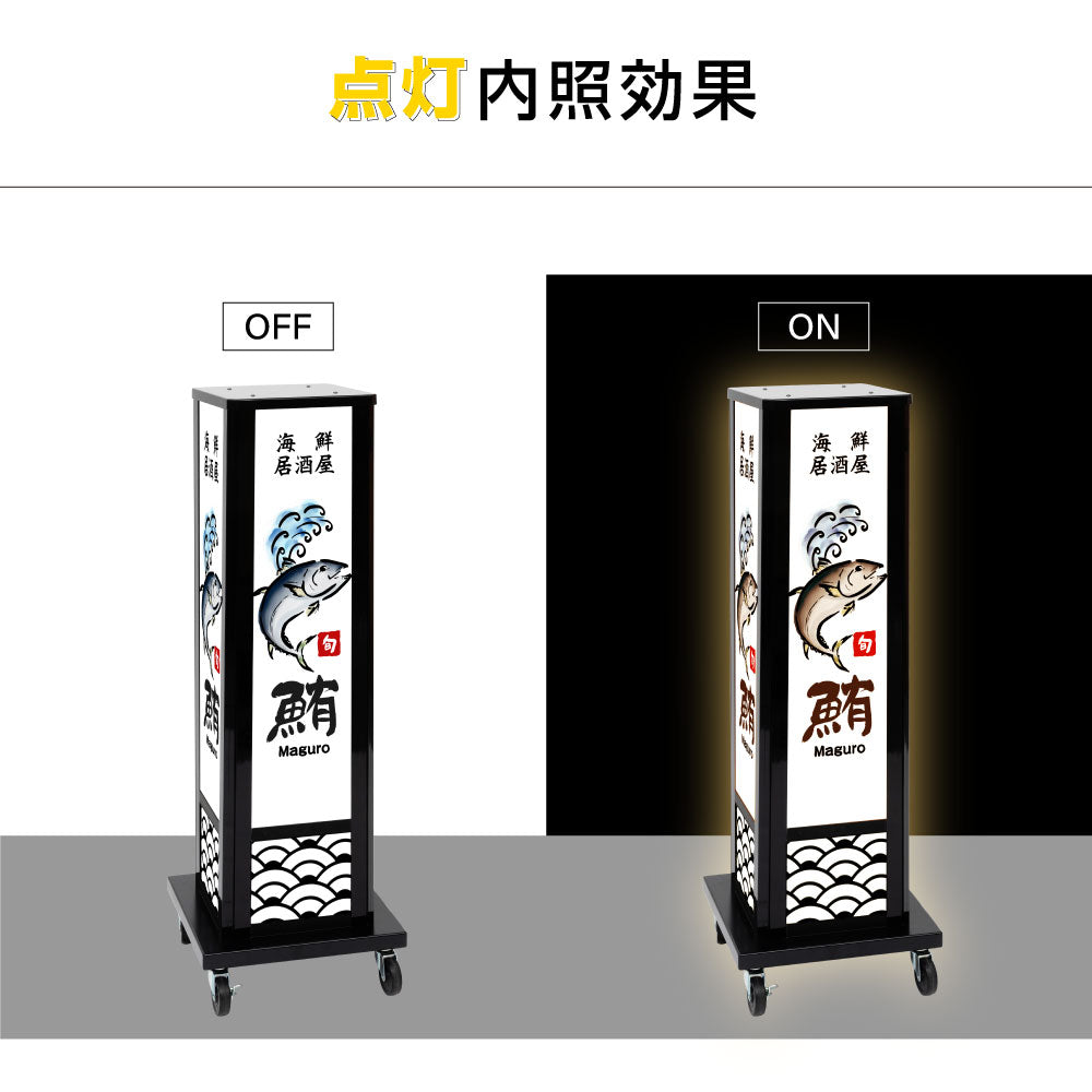 電飾スタンド看板 和風 印刷シート貼込タイプ 四面表示 高さ112cm 青海波/麻の葉/桧垣/黒 ts-wf-03-s - 青海波 / 電球色 / 印刷なし ...は取り寄せ中で入荷次第発送します。